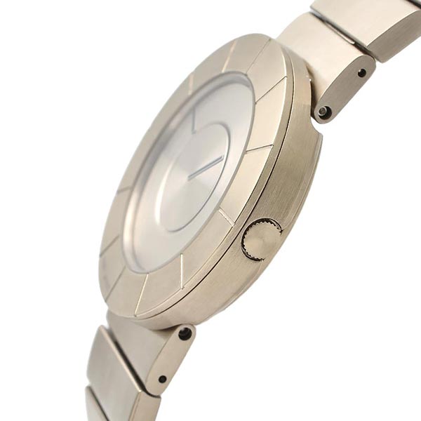金属の素材感を強調するため、文字板や針など一般的な時計のデザイン要素を極力排除し、シンプルかつモダンなスタイルで男女問わず長年愛され続けています。