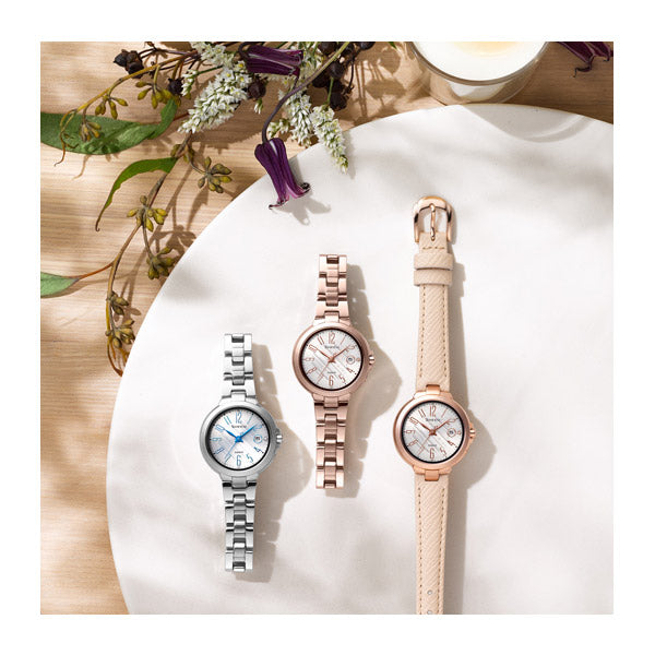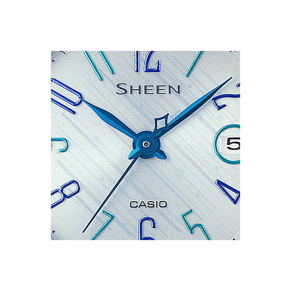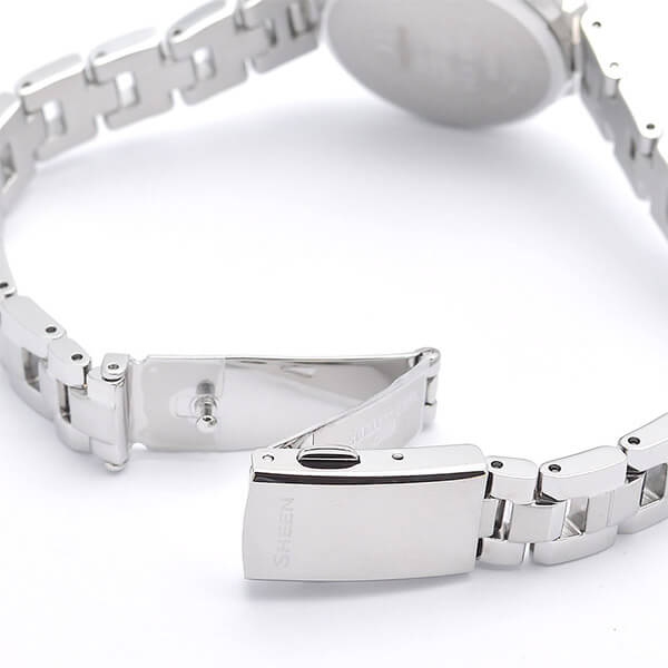 “輝き・煌き”を女性らしいデザインや機能で表現する「SHEEN」の電波ソーラーシリーズから、新しいモデルが登場。デザインコンセプトは木漏れ日。木漏れ日をイメージし、光が射しこんだようなデザインを中央に施しています。また、3時位置にはクリスタルを配し、秒針には輝きをイメージした形状をデザイン。縦長のアラビック文字のインデックスにすることにより、 見やすいながら遊び心のあるデザインに仕上げています。すべての時間をきちんと生きる女性の手元を美しく彩る、 電波ソーラーウオッチの登場です。