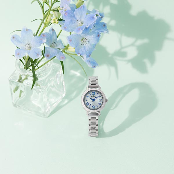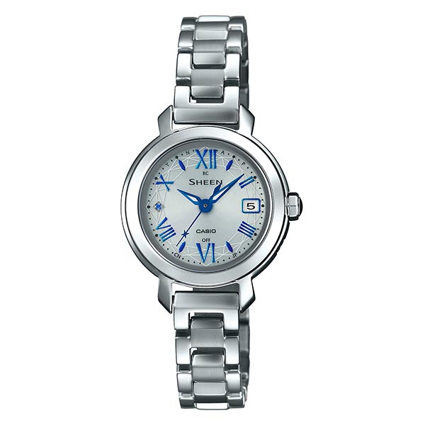 SHEENの電波ソーラーモデルから、夏の太陽の輝きをテーマにしたNewモデルが登場します。文字板に、光が降り注ぎキラキラ輝く海面の様子をジオメ トリックパターンで表現。光を受けて輝くフェイスは腕を 傾ける度に違う表情を見せます。日本と中国の標準電波受信機能やタフソー ラー、日付表示などを搭載。