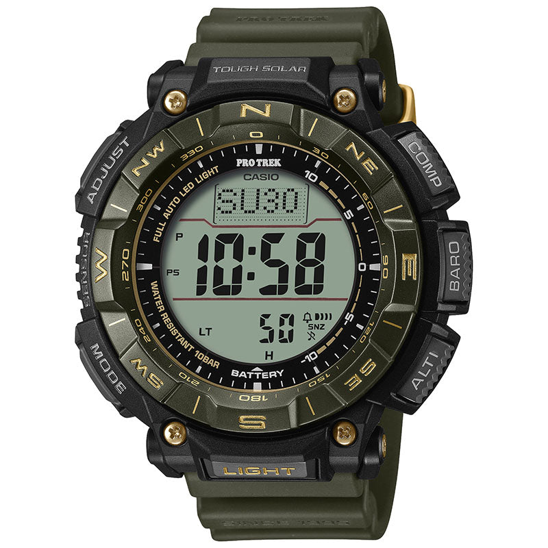 木漏れ日に輝く30年の歴史と進化自然を愛する人の本格アウトドアギアPRO TREKの 30周年を記念した特別モデル「PRW-61ANS」と「PRG-340ANS」をご紹介します。ブランドコンセプト“One with Nature”を象徴する森の木漏れ日をテーマに、自然を表現するグリーンと光を表す30周年記念ゴールドを基調としたデザイン。ゴールドIPを施したメタル遊環、バンドに刻まれた歴代モデル名、ケースバックの30周年ロゴなど、特別感あふれるディテールが魅力です。アウトドアで頼れる機能性両モデル共通のトリプルセンサーが方位・気圧・高度・温度を正確に計測。タフソーラーシステムにより、わずかな光でも発電して機能を維持するため、長時間のアウトドア活動でも電池切れの心配なく安心して使用できます。10気圧防水設計で、あらゆる自然環境に対応します。「PRW-61ANS」はPRO TREK史上初の文字板蒸着を採用したアナログ・デジタルコンビネーションモデル。世界6局の電波を受信するマルチバンド6機能で、常に正確な時刻を表示します。「PRG-340ANS」はデュプレックスLCD採用のデジタルモデル。二層構造の液晶で方位をグラフィカルに表示しながら、時刻や計測値を大きく見やすく表示。薄型化された液晶によりデュプレックスLCDでありながら、スリムなケースデザインを実現しています。環境への配慮ケースやバンドには環境負荷低減に貢献するバイオマスプラスチックを採用。自然を愛するアウトドア愛好家の皆様の活動をサポートしながら、地球環境にも配慮した時計です。自然の中で信頼できるパートナーとして、PRO TREKの30年の技術と哲学が凝縮された記念モデルが、あなたのアウトドアライフをより豊かに彩ります。