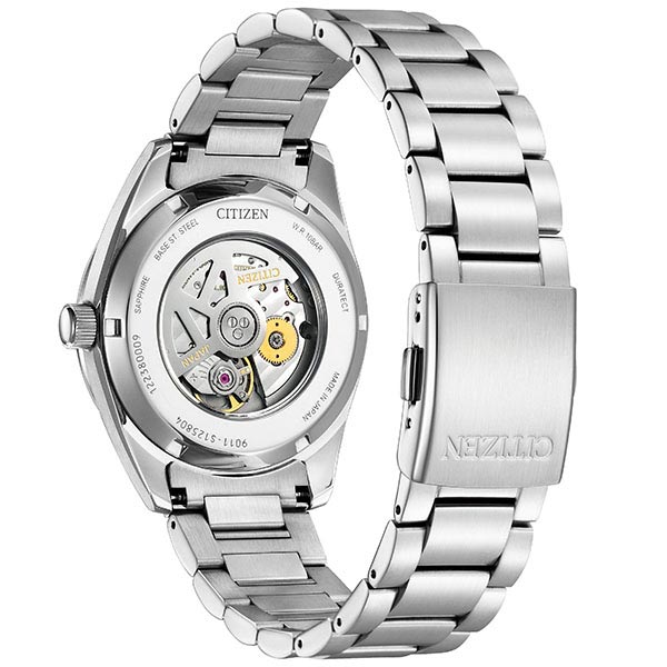 | 仕様 | アナログ 機械式(自動巻き/手巻き) 10気圧防水 三つ折れプッシュ サファイアガラス(無反射コーティング) 夜光(針+インデックス) 日差-10~+20秒 機械式腕時計 自動巻き+手巻き 振動数:28,800回/時 石数:24石 秒針停止機能 日付早修正機能 駆動時間約42時間(最大巻上時) Cal.9011 |