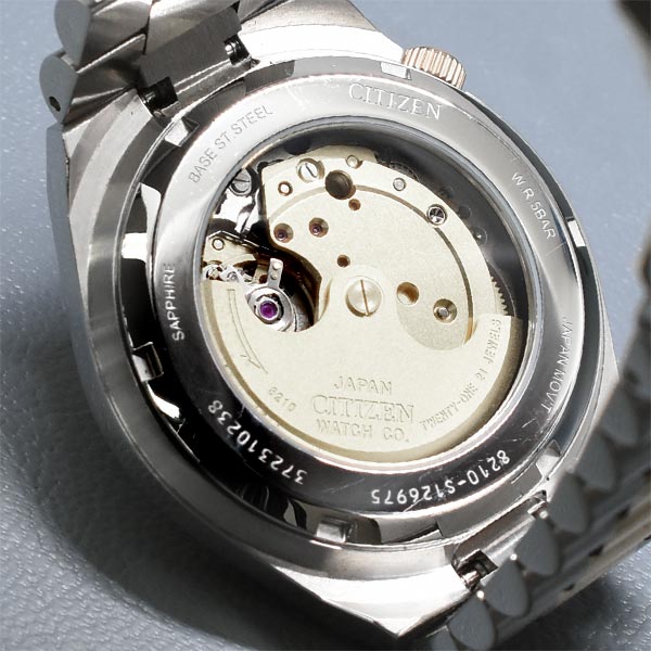 | 仕様 | 夜光(針+インデックス) 日差-20~+40秒 振動数:21,600回/時 石数:21石 秒針停止機能 日付早修正機能 駆動時間約40時間(最大巻上時) キャリバーNo.8210 |