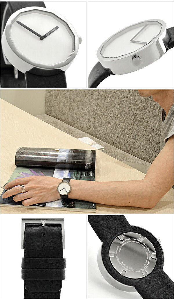 イッセイミヤケの「SILAP001」 ステンレス素材の丸型ケースと、レザー素材のベルト。ホワイトの裏蓋にはスクリューバックを搭載。また、中留め構造は穴留め式を採用しています。