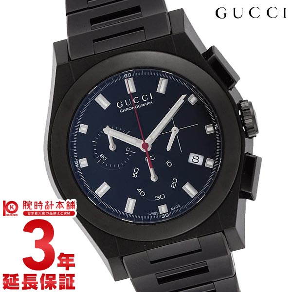グッチの「YA115237」 ステンレス素材で統一された丸型ケースとベルト。文字盤には12時位置にブランドロゴを配置しています。機能としてクロノグラフ、日付表示機能等を搭載。また、中留め構造は両開きプッシュ式です。