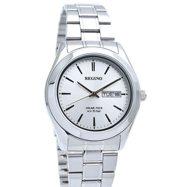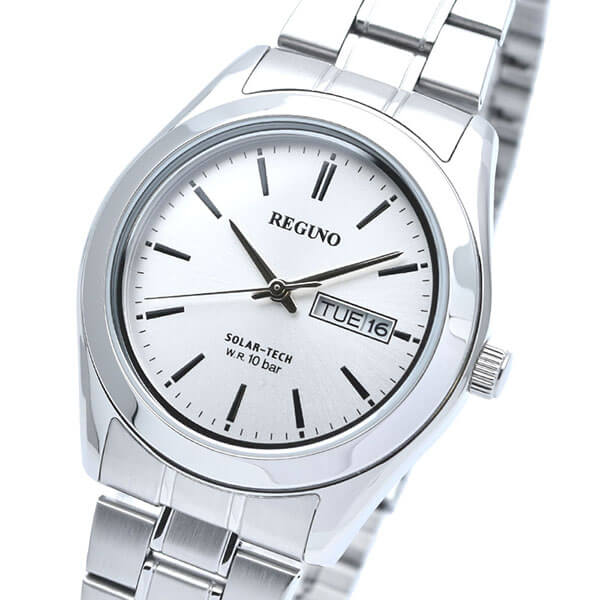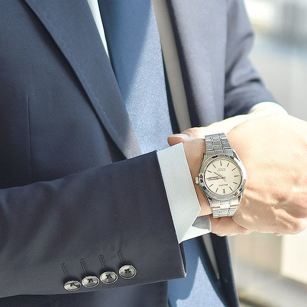定期的な電池交換が不要の「ソーラーテック」を搭載したモデルです。10気圧防水なので、水に触れる機会の多い仕事の方にも安心してお使いいただけます。