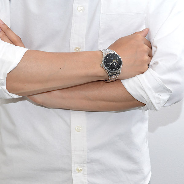 日本庭園の砂紋(さもん)を表現した立体型打ちダイヤルを採用し、表情豊かな陰影を演出しています。歪みのない見やすさを実現した、デュアルカーブサファイアガラスと職人技の曲げ針を組み合わせることで視認性も抜群。駆動部の見えるオープンハートタイプなので機械式時計の鼓動を実感して頂けます。