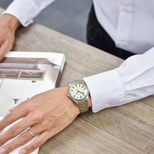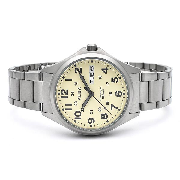チタンの軽さとスポーティーなデザインウオッチ。視認性の高さと、曜日・日付表示による実用性が十分にあるモデルです。