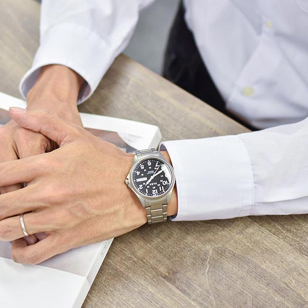 チタンの軽さとスポーティーなデザインウオッチ。視認性の高さと、曜日・日付表示による実用性が十分にあるモデルです。