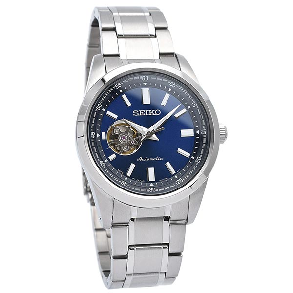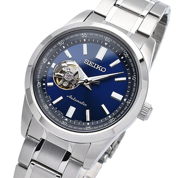 セイコーのメカニカルシリーズ(SARV001/003/004/006)にセミスケルトンモデルが新投入!金属ダイヤルならではの綺麗な色味のダイヤルと、シンプルながらも存在感のある針や植略字、機械式腕時計の特徴であるムーブメントの動きを見ることができるオープンハートモデル、スタンダードなデザインでどんなシーンにも使いやすいメカニカルウオッチになっています。