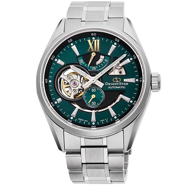 ORIENT STARの人気モデル『モダンスケルトン』から新色が登場。文字板の9時位置には、ムーブメントがのぞくセミスケルトン構造を採用。幅広いシーンで合わせやすいデザインに仕上げました。