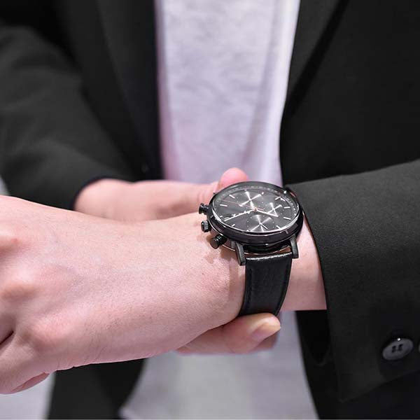 | 仕様 | 24時針つき(機能2)/ストップウオッチ機能(1秒計測 30分計)(機能2)/パワーリザーブ表示機能(機能2)/ フル充電時約4ヶ月間 MOVEMENT JAPAN CASED IN THAILAND |