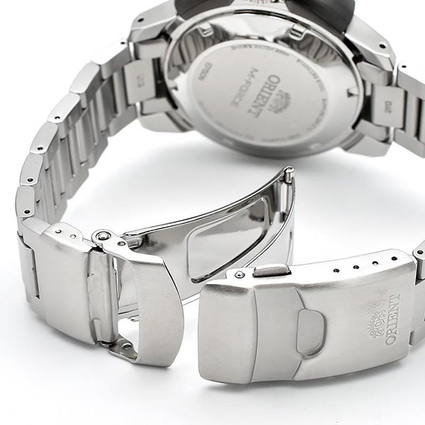 ORIENTの人気シリーズ『M-FORCE』がORIENT70周年を記念して復活!ISO規格に準拠した200m空気潜水用防水のダイバーズウォッチです。おおぶりでタフながらも細部まで考え抜かれた洗練したデザインが特長。過去に発売したM-FORCEの基本要素を継承しながら、最新のインダストリアルデザインのトレンドにリニューアルしました。基本形状は、外圧に対して強いラウンドフォルムで構成し、ダイバーズウォッチとしてのタフさや堅牢感を実現。3時側のガードパーツはケースにねじ固定することで、りゅうずだけでなくケース・ベゼルを傷や衝撃からガードします。