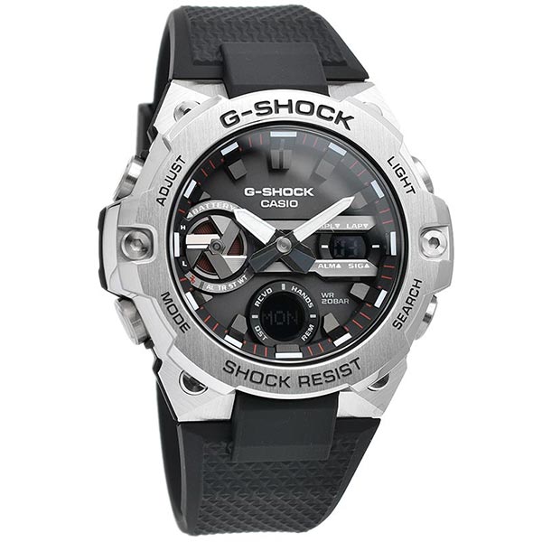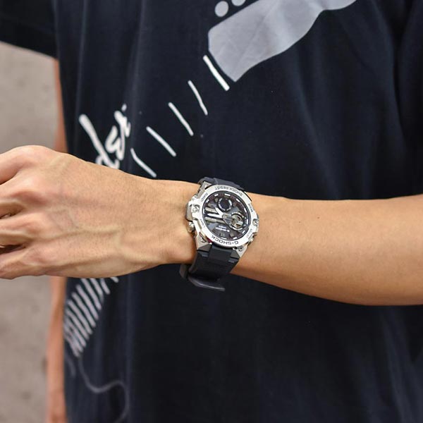 1983年の発売以来、飽くなき強さを求めて進化を続けるタフネスウオッチG-SHOCK。薄型モジュールとカーボンコアガード構造により、スリムでデザイン性の向上したG-STEELのGST-B400です。