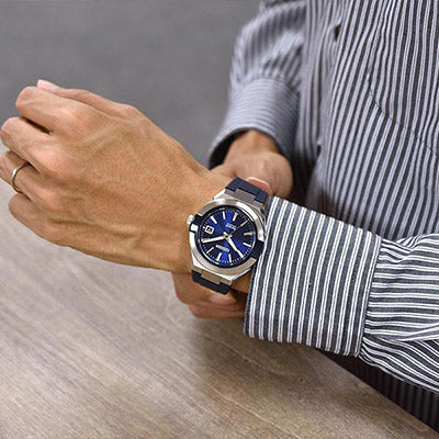・新開発の薄型メカニカルムーブメントCal.0950を搭載した「シリーズエイト」の代表モデル。強化耐磁性能と高精度を備えながらもスリムに仕上げ、装着感にもこだわりました。