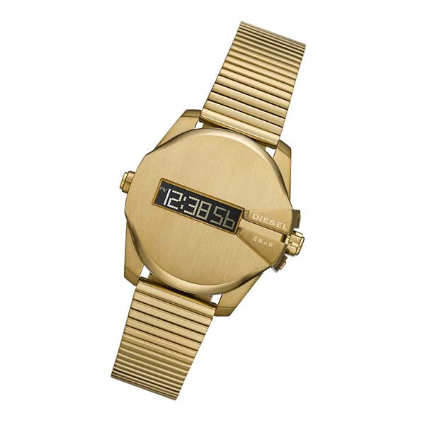32mm径のケースにデジタルムーブメントを搭載したベビーチーフ。ミラー&ネガティブディスプレイダイヤルに、ゴールドトーンのステンレススチールブレスレットを組み合わせました。