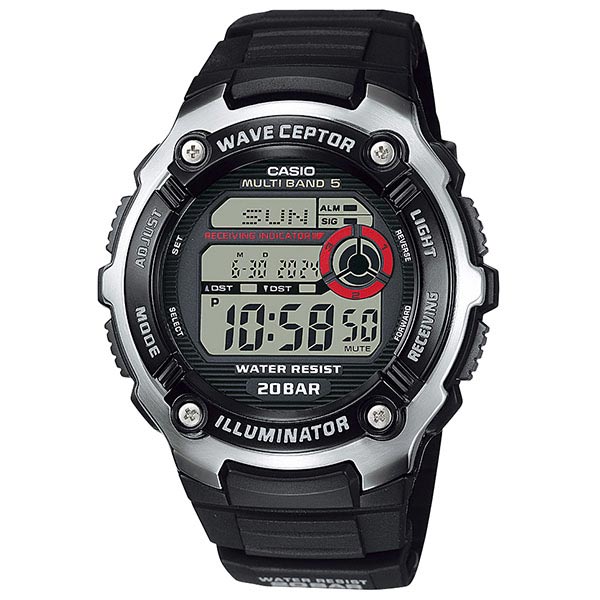マリンスポーツや水泳などにも安心して使用できる20気圧防水のスポーツウオッチです。また、世界5局の電波に対応するマルチバンド5電波受信機能を搭載しています。