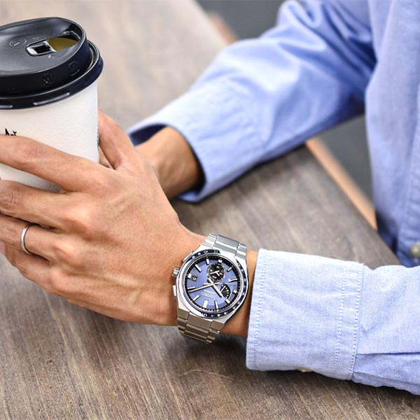 あらゆるシーンでも抜群の視認性を実現。コンパクトかつ低重心のチタンケースと腕なじみの良いH駒チタンブレスレットによりストレスフリーな装着性を実現。