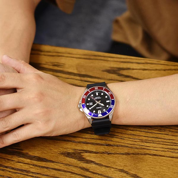 | 仕様 | ・日付表示 ・電池寿命約3年 ・逆回転防止ベゼル ・スクリューバック ・月差±20秒 |