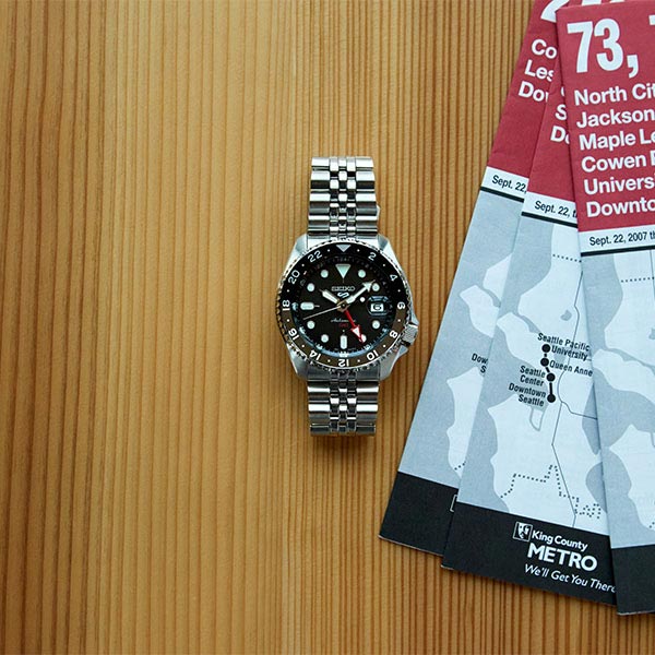 SKXシリーズのDNAを継ぐGMTモデルとして、BOYデザインの正統進化と呼ぶにふさわしいスペックを装備。