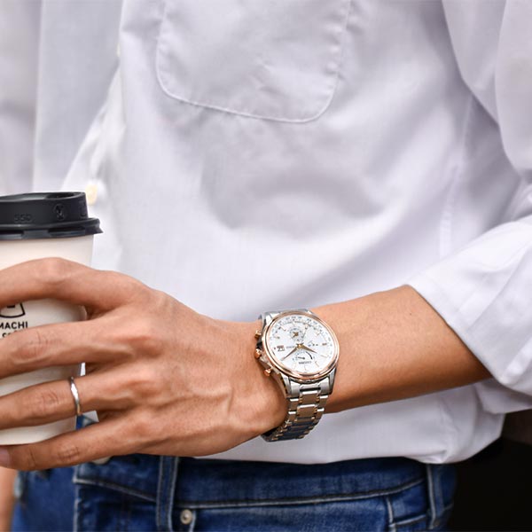 ・ブランド誕生45周年のエクシード、クオーツ時計では世界初のグランドコンプリケーションとして1999年に発売されたモデルをはじめ、歴史を彩るエポックメイキングなモデルへのオマージュを込めた、エコ・ドライブ電波時計のペアモデルです。