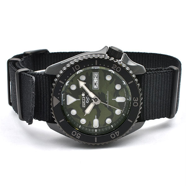 ファッションウェアとしては定番となっているカモフラージュ柄デザインを採用したモデルを投入。SKXシリーズのカスタムファンにも非常に人気が高く、ブラックケースとの相性がよいカモフラージュ柄の組み合わせ。文字板のカモフラージュ柄は金属の質感を引き出し、質感を維持できる仕上げでそれぞれ表現。文字板は立体的な型押しでカモフラージュ柄を再現。ブラックトーンでまとめ、バンドにはシリコン素材を採用。裏ぶたにはサインとシリアルを入れた特別仕様。機械式として抜群のコストパフォーマンスで、十分なスポーティースペックでラフな取り扱いにも対応。