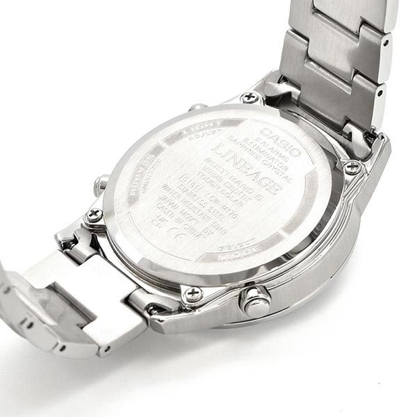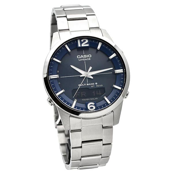 フルメタルケースのソーラー電波時計「LINEAGE」から、6時位置にデジタル表示が付いた実用性に優れたコンビネーションモデルです。落ち着いた深いネイビーカラーなのでオンオフ問わず様々なシーンで着用できます。風防に反射防止コーティングサファイアガラスを採用し、傷が付きにくく高い視認性を保ちます。また、カレンダー表示やワールドタイム、アラーム機能、LEDライトなど実用的な機能を搭載しています。
