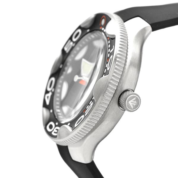 ・オルカ(シャチ)をモチーフにした独創的なデザイン。オルカのフォルムのような流線型のケースラインやふっくらとした時分針、オルカが水面に上がった際の背中をイメージしたウレタンバンドなど、ディテールにもこだわっています。
