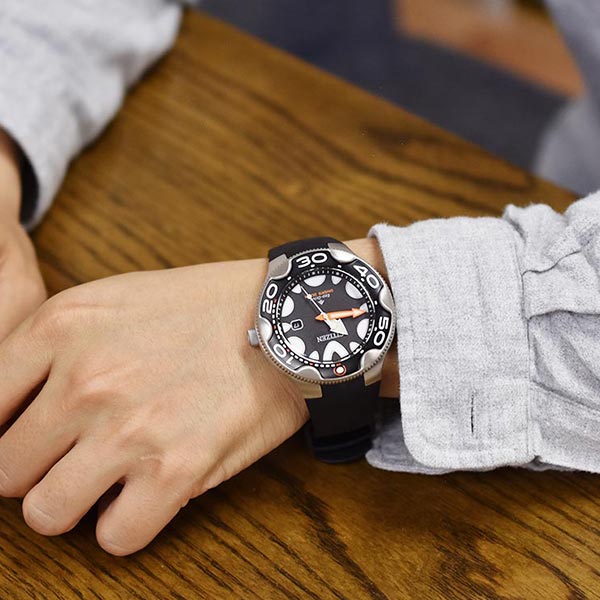 機能性、耐久性、安全性を兼ね備えた本格スポーツウオッチ、シチズン PROMASTER(プロマスター)。海外で人気を集めてきたダイバーズウオッチが日本初登場。オルカをモチーフにした独創的なデザインが視線を惹きつけます。