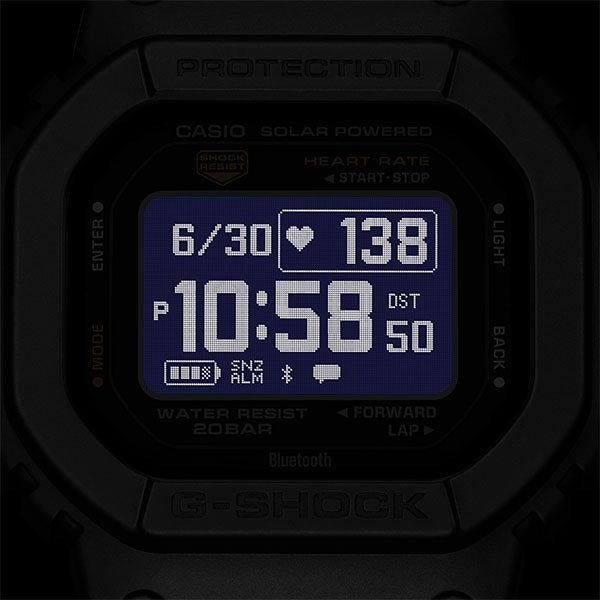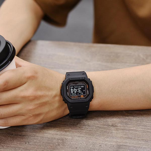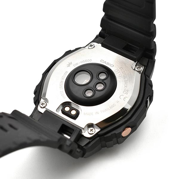 G-SHOCKのスポーツライン「G-SQUAD」から、日常生活で活躍するDW-H5600シリーズのご紹介です。ワークアウトに役立つ機能として、心拍計測が可能な光学式センサー、歩数計測が可能な加速度センサーを搭載。ランニング、ウォーキングやワークアウトに対応しています。また、ポラール社ライブラリによるトレーニング解析、睡眠による回復度の解析、呼吸エクササイズ等が可能です。また、血中酸素レベル計測機能も搭載しております。