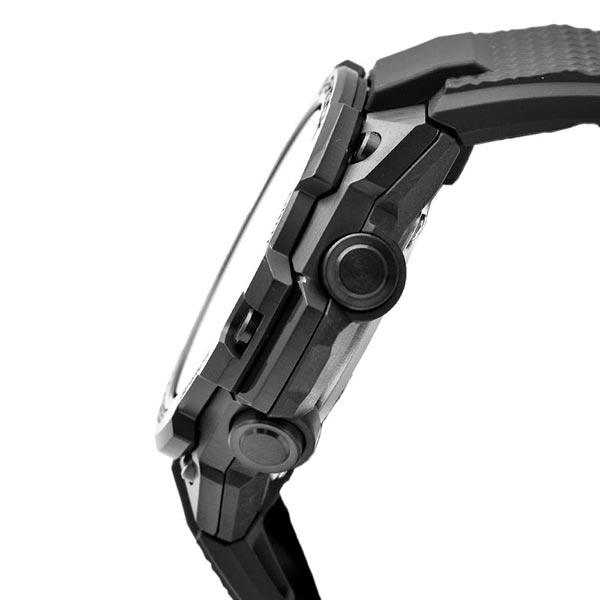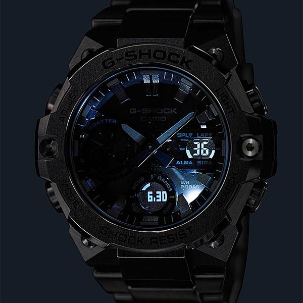 1983年の発売以来、飽くなき強さを求めて進化を続けるタフネスウオッチG-SHOCK。メタルと樹脂の異素材を融合したG-STEELをベースに人気のオールブラック仕様のモデルです。ブラックをベースにブラックIPを施したメタルベゼルを採用し、シックでファッションアイテムとして幅広く活用できるデザインに仕上げました。ベースモデルには、薄型モジュールとカーボンコアガード構造のGST-B400を採用しています。タフネスとデザイン性を両立した、G-STEELシリーズにオールブラックのカラーリングで、幅広くご利用いただけるクールなデザインとなっております。