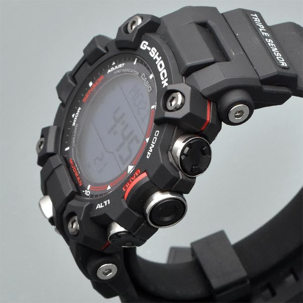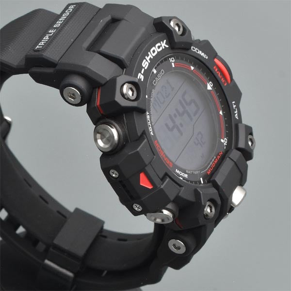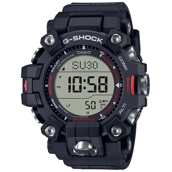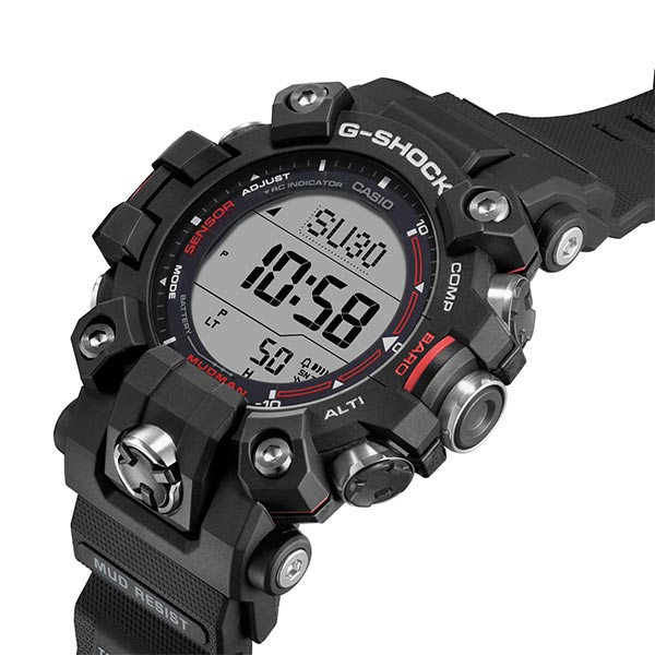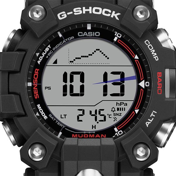 過酷な自然環境に立ち向かう男たちをサポートするG-SHOCK MASTER OF Gシリーズから、マッドレジスト構造を搭載したMUDMANのトリプルセンサーモデルです。薄型・小型化と高い装着性を実現しています。多機能、多パーツで構成された外装により、薄型でも力強いデザインに仕上がりました。