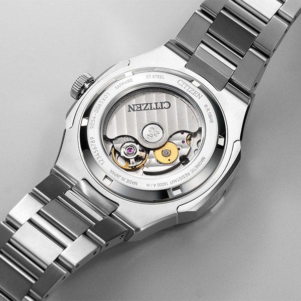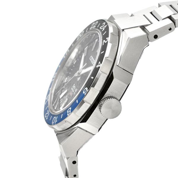 | 仕様 | 耐磁2種 夜光(針+インデックス) 日差-10~+20秒 自動巻き+手巻き 振動数:28,800回/時 石数:24石 秒針停止機能 日付表示 時差設定機能 GMT機能 駆動時間:約50時間(最大巻上時) キャリバーNo.9054 |