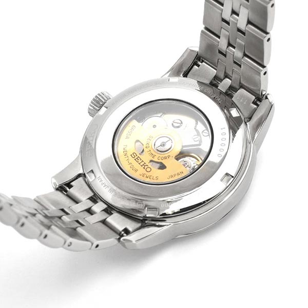 | 仕様 | シースルーバック スクリューバック 琺瑯ダイヤル 石数 24石 秒針停止機能 最大巻上時約72時間持続 MADE IN JAPAN |