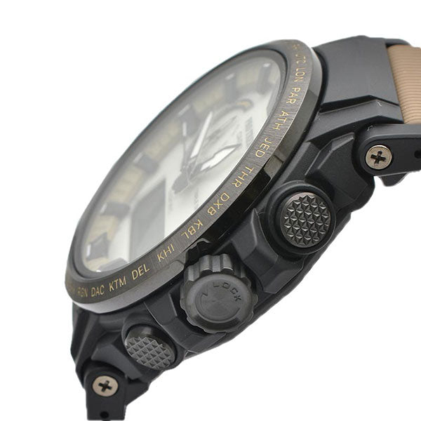 | 仕様 | ・タフソーラー(ソーラー充電システム) ・電波受信機能:自動受信(最大6回/日)(中国電波は最大5回/日)/手動受信、 <日本>受信電波:JJY、周波数:40kHz/60kHz(福島/九州両局対応モデル) <北米地域>受信電波:WWVB、周波数:60kHz <ヨーロッパ地域>受信電波:MSF/DCF77、周波数:60kHz/77.5kHz <中国>受信電波:BPC、周波数:68.5kHz *ホームタイム設定を受信可能な都市に設定すると、都市に合わせた局を受信します。尚、時差は選択した都市によって設定されます。 ・針位置自動補正機能 ・針退避機能(手動、自動(高度、気圧、温度計測時)) ・ワールドタイム:世界29都市(29タイムゾーン、サマータイム設定機能付き)+UTC(協定世界時)の時刻表示、ホームタイムの都市入替機能、UTCダイレクト呼出機能 ・方位計測機能:16方位・方位の角度(0~359°)を計測、方位連続計測(60秒)、北方位指針機能、磁気偏角補正機能、方位補正機能(2点補正) ・高度計測機能/相対高度計(計測範囲:-700~10,000m、1m単位)、高度差インジケーター(計測範囲1:100m/5m単位、計測範囲2:1,000m/50m単位)、高度傾向グラフ表示、計測間隔設定機能(5秒/2分)、高度メモリー(計測年月日・時刻・高度を最大30本マニュアルメモリー)、自動記録データ(最高/最低高度、オート積算(上昇/下降)メモリー) ・気圧計測機能(計測範囲:260~1,100hPa、1hPa単位)、気圧傾向グラフ表示(過去20時間分を表示)、気圧差インジケーター(計測範囲:±10hPa/1hPa単位)、気圧傾向インフォメーションアラーム(特徴的な気圧の変化が起こった場合に矢印と報音でお知らせします) ・温度計測機能(計測範囲:-10~60℃、0.1℃単位) ・ストップウオッチ(1/100秒、24時間計) ・タイマー(セット単位:1分、最大セット:60分、1秒単位で計測) ・時刻アラーム5本・時報 ・バッテリーインジケーター表示 ・パワーセービング機能 ・フルオートカレンダー ・12/24時間制表示切替 ・耐低温仕様(-10℃) ・操作音ON/OFF切替機能 ・ダブルLEDライト:文字板用LEDライト(フルオートライト、スーパーイルミネーター、残照機能、残照時間切替(1.5秒/3秒)付き)、LCD部用LEDバックライト(フルオートライト、スーパーイルミネーター、残照機能、残照時間切替(1.5秒/3秒)付き) |