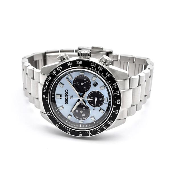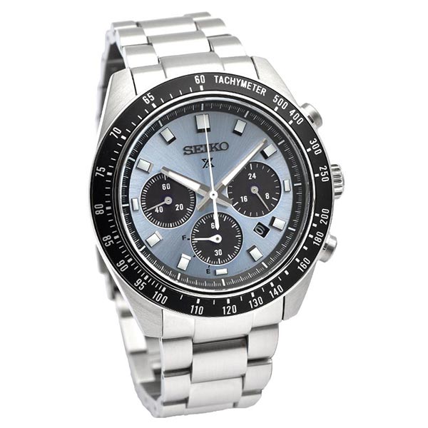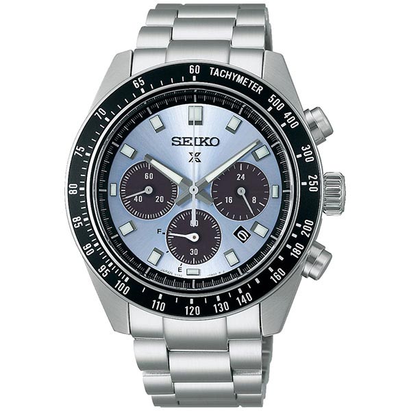 スピードタイマー ソーラークロノグラフコレクションにエレガントなクリスタルブルーカラーのレギュラーモデルが登場。コンセプト:挑戦し続けるアスリート達への賛辞を象徴する「クリスタルトロフィー」からインスパイアされた“Elegance sports design”美しく光を反射する放射仕上げの透明感のあるクリスタルブルーカラーのダイヤルを採用した、径大ケース(41.4mm)モデルがレギュラーモデルとして新たにラインアップ。センターのクロノグラフ秒針と6時位置の分積算針のカラーを統一することで、経過時間を瞬時に確認できる仕様とし、判読性を追求。