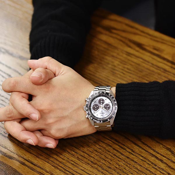 | 仕様 | スクリューバック タキメーターつき 過充電防止機能 24時針つき 小秒針つき ストップウオッチ機能(1/5秒計測 60分計) フル充電時約6ヶ月間 MADE IN JAPAN |