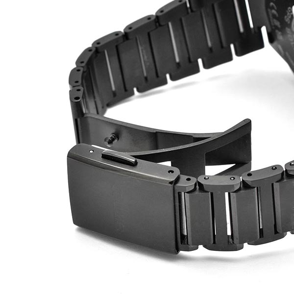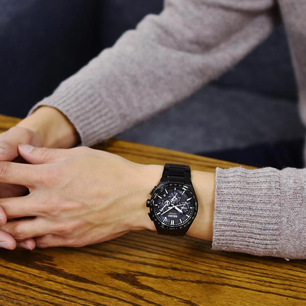NEXTER 1st Collectionからクールな印象を与えるオールブラックのカラーリングが登場。トレンドのモノトーンを基調としたモードなデザインが特長的で、ワンランク上のコーディネートにもマッチ。圧倒的な存在感・高級感を放つサファイアガラス、そしてスタイリッシュな印象を与えるソリッドなケース造形は次世代のリーダー達の腕元を飾るに相応しい、威厳と風格を演出。ケース一体型のテーパーがかかったチタンブレスレットのフォルムがケースの存在感を引き立てると共に、軽やかで洗練された印象に。直線的でシャープなインデックス・時分針はしっかりとルミブライトが施され、他社にはマネできない力強い精悍な顔つきに スーパークリアコーティングによって、あらゆるシーン、どんな角度でも抜群の視認性を実現。コンパクトかつ低重心のチタンケースと腕なじみの良いH駒チタンブレスレットによりストレスフリーな装着性を実現。