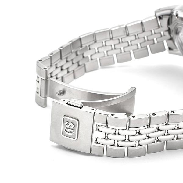 手巻きメカクラシックケースから、メタルバンドモデルが登場。腕に会いやすい粒トロメタルバンドを復活させました。ダイヤルはシルバーのメタリック調に仕上げ、洗練された顔立ち。