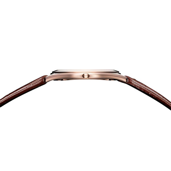 ・バーガンディーカラーでピンクゴールドのケースを包み込むことで、深く暖かみのある上質な世界観を演出しています。