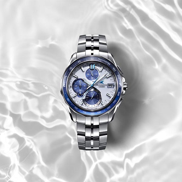 “Elegance, Technology”をブランドコンセプトに、上質な仕上げと薄く美しいフォルムを追求しているOCEANUS Manta(オシアナス マンタ)より、上質なホワイトをデザインに採用したOCW-S7000Dです。OCW-S7000Dには、海を感じられる爽やかでスポーティなカラーを取り込みました。上質なホワイトとOCEANUSブルーを文字板に採用しています。 OCWS7000D7AJF