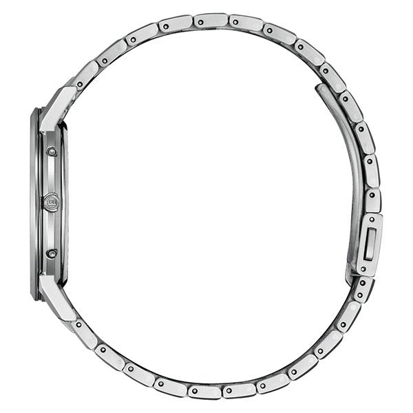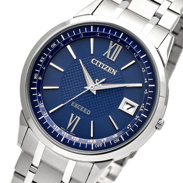 確かな品質と洗練されたデザイン。大人のためのドレスウオッチ、シチズン EXCEED(エクシード)。ダイレクトフライト機能を搭載したエコ・ドライブ電波時計に薄さを極めた新モデルが登場。新キャリバー「Cal.H147」を搭載。日米欧中多局受信型、光発電電波時計として世界最薄※のケース総厚7.0mm(設計値)を実現しました。文字板には都市表示を入れず時差表示のみに留めたシンプルな機能表示。ダイヤ形にカットされた時分針が、ケースのデザインと相まってシャープな印象を与えます。ブラック文字板とネイビー文字板中央にはピラミッドパターンをあしらい、ホワイト文字板中央には白蝶貝を採用しています。クラリティ・コーティングを施したサファイアガラスを採用。陽射しの強い場所などでも時刻をはっきり読み取ることができます。※アナログ式多局受信型光発電電波時計において。2023年11月時点。シチズン時計調べ。