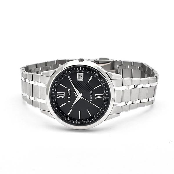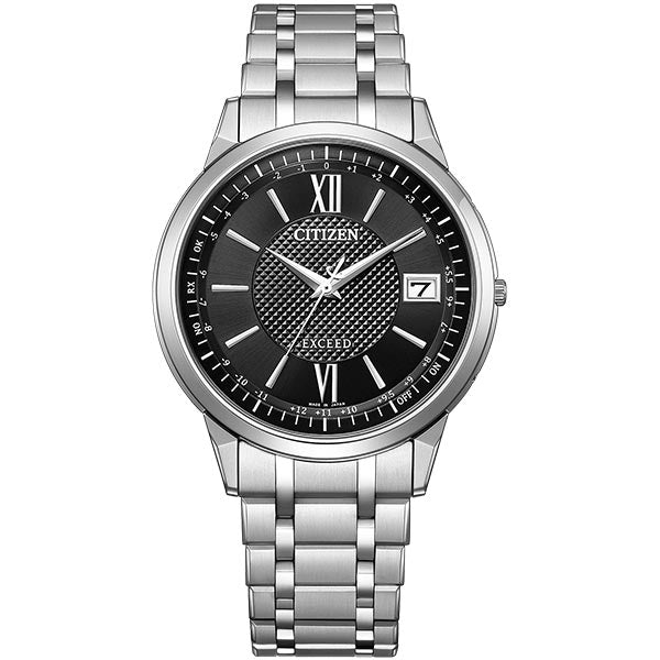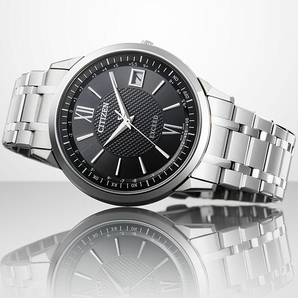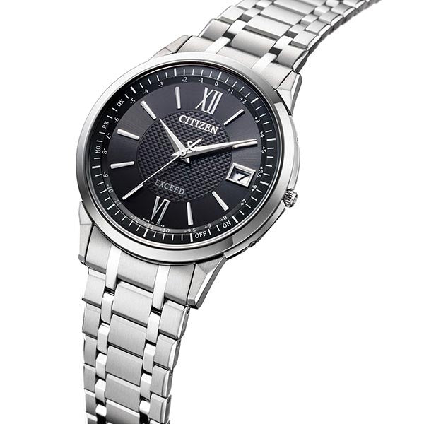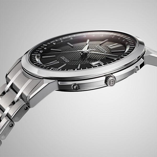 確かな品質と洗練されたデザイン。大人のためのドレスウオッチ、シチズン EXCEED(エクシード)。ダイレクトフライト機能を搭載したエコ・ドライブ電波時計に薄さを極めた新モデルが登場。新キャリバー「Cal.H147」を搭載。日米欧中多局受信型、光発電電波時計として世界最薄※のケース総厚7.0mm(設計値)を実現しました。文字板には都市表示を入れず時差表示のみに留めたシンプルな機能表示。ダイヤ形にカットされた時分針が、ケースのデザインと相まってシャープな印象を与えます。ブラック文字板とネイビー文字板中央にはピラミッドパターンをあしらい、ホワイト文字板中央には白蝶貝を採用しています。クラリティ・コーティングを施したサファイアガラスを採用。陽射しの強い場所などでも時刻をはっきり読み取ることができます。※アナログ式多局受信型光発電電波時計において。2023年11月時点。シチズン時計調べ。