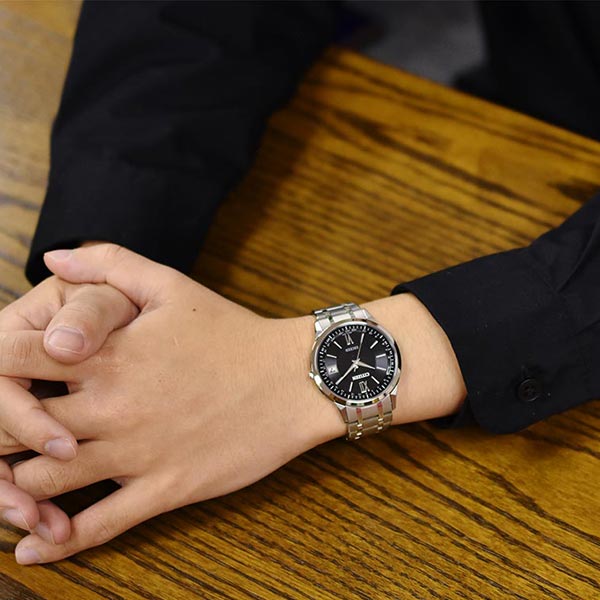 | 仕様 | 耐ニッケル 耐磁1種 月差±15秒(非受信時) パーペチュアルカレンダー 日中米欧電波受信 受信局自動選択機能 強制受信機能 衝撃検知機能 針自動補正機能 サマータイム機能 充電残量表示機能 充電警告機能 過充電防止機能 ワールドタイム機能(26時差) パワーセーブ機能 フル充電時2年稼働(パワーセーブ作動時) |