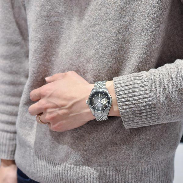 古くから日本人の暮らしを彩ってきた、機能性と美しさを併せ持った数々の工芸品に込められた感性を表現。オーセンティックな造形をベースとしながら、日本の伝統文化に根差した要素をエッセンスとして取り入れ。使い込むごとに身体や生活に馴染んでいくような飽きの来ないデザインとなっております。立体的なダイヤルが、クラシックな雰囲気を演出。日本の伝統的素材である絹に着目し、生糸の質感をイメージした模様を採用。立体成型ダイヤルの曲面に型打ち模様を組み合わせることで、独自の深い味わいを実現しております。針やインデックスをダイヤルの曲面に合わせてカーブさせることで、ダイヤル全体が柔らかな光で輝いて見えます。ケースは柔らかな曲面で構成された、思わず指先で触れたくなるような親しみやすさを感じられる造形に。バンドには70年代のメタルバンドをイメージしたレトロ感のある繊細な多列バンドを採用。量感と高級感を備え、着用性にも配慮したデザインとなっております。