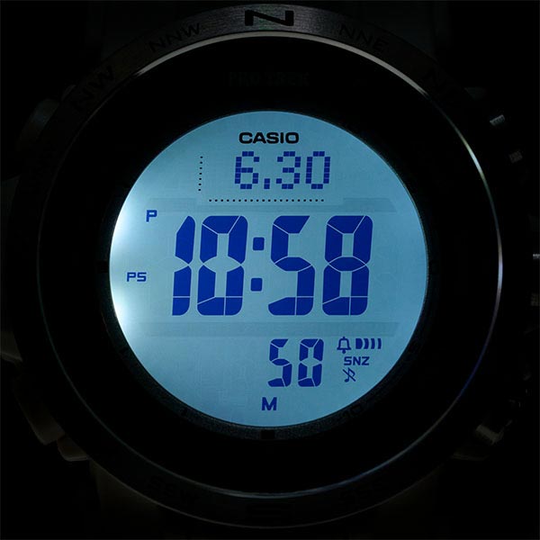 | 仕様 | ・タフソーラー(ソーラー充電システム) ・電波受信機能:自動受信(最大6回/日)(中国電波は最大5回/日)/手動受信、 <日本>受信電波:JJY、周波数:40kHz/60kHz(福島/九州両局対応モデル) <北米地域>受信電波:WWVB、周波数:60kHz <ヨーロッパ地域>受信電波:MSF/DCF77、周波数:60kHz/77.5kHz <中国>受信電波:BPC、周波数:68.5kHz *ホームタイム設定を受信可能な都市に設定すると、都市に合わせた局を受信します。尚、時差は選択した都市によって設定されます。 ・ワールドタイム:世界48都市(31タイムゾーン、サマータイム設定機能付き)+UTC(協定世界時)の時刻表示、ホームタイムの都市入替機能 ・方位計測機能:16方位・方位の角度(0~359°)を計測、東西南北をグラフィック表示、方位連続計測(60秒)、ベアリングメモリー(目標(目的地)の方位を記録して記録した方向を示す)、磁気偏角補正機能、方位補正機能(2点補正) ・気圧計測機能(計測範囲:260~1,100hPa、1hPa単位)、気圧傾向グラフ(42時間分)、気圧差インジケーター(±10hPa)、気圧傾向インフォメーションアラーム(特徴的な気圧の変化が起こった場合に矢印と報音でお知らせします) ・高度計測機能/相対高度計(計測範囲:-700~10,000m、1m単位)、高度差インジケーター(±3000m)、高度傾向グラフ、計測間隔設定機能(5秒/2分毎)※最初の3分間のみ1秒毎、高度メモリー(計測年月日・時刻・高度を最大30本マニュアルメモリー)、自動記録データ(最高/最低高度、オート積算(上昇/下降)メモリー) ・温度計測機能(計測範囲:-10~60℃、0.1℃単位) ・日の出・日の入時刻表示 ・ストップウオッチ(1/10秒、1000時間計、スプリット付き) ・タイマー(セット単位:1分、最大セット:24時間、1秒単位で計測) ・時刻アラーム5本(1本のみスヌーズ機能付き)・時報 ・バッテリーインジケーター表示 ・パワーセービング機能(暗所では一定時間が経過すると表示を消して節電します) ・フルオートカレンダー ・12/24時間制表示切替 ・耐低温仕様(-10℃) ・操作音ON/OFF切替機能 ・LEDバックライト(フルオートライト、スーパーイルミネーター、残照機能、残照時間切替(1.5秒/3秒)付き) |