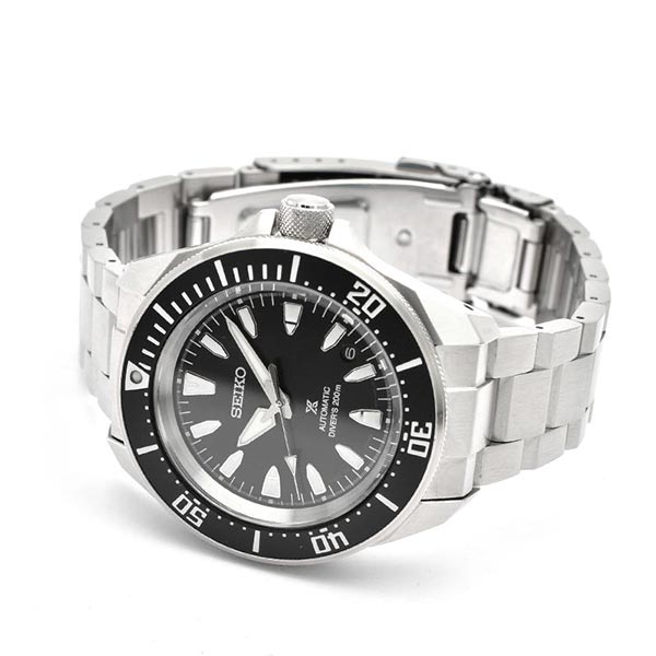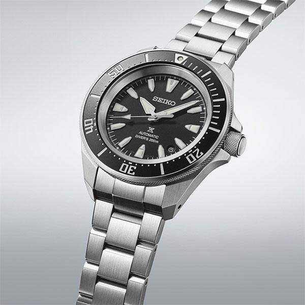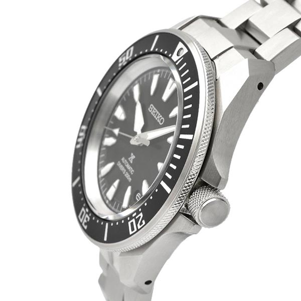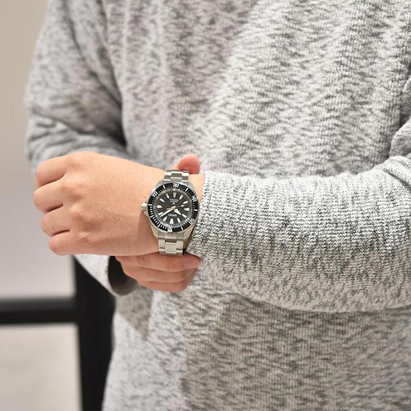 プロスペックスで高い人気を誇るダイバーズをコンパクトにアップデートした新デザインモデルが登場。直線的なケース造形を継承しつつ、よりシャープで凝縮感のあるデザインへとアップデート。現行モデルより、ケース径・厚さ、ともに小型化することで装着感を向上させております。質感を高めたブレスレット・無垢材を使用した高級感のある新型ブレスレットを採用。中駒にカット面をいれることで直線的なケースに合う高い質感を実現しております。