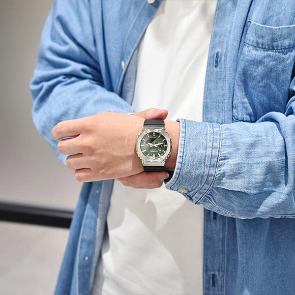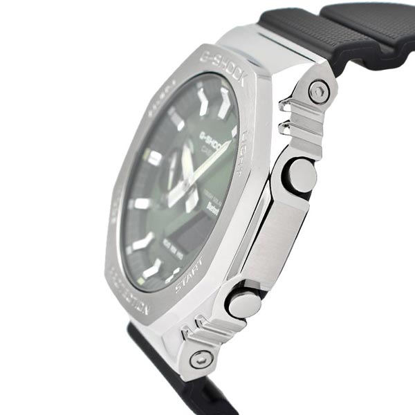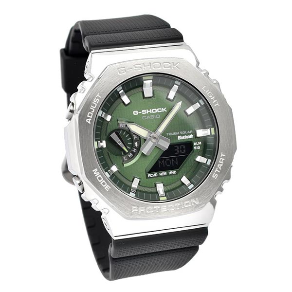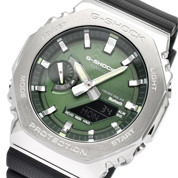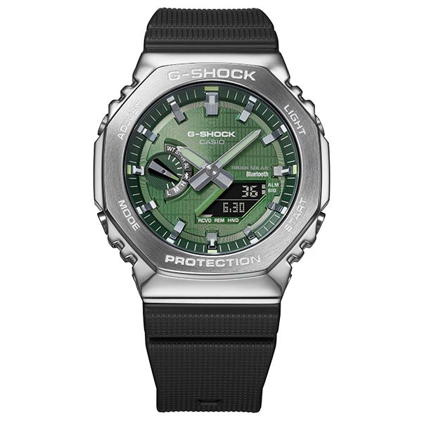 1983年の発売以来、飽くなき強さを求めて進化を続けるタフネスウオッチG-SHOCKから、2100シリーズの特徴であるスリムなサイズ感をキープしながら、スマートフォンリンクとタフソーラーを搭載したメタルカバードモデルです。、定番のブラック、蒸着塗装を施したブルー、グリーンの文字板の3色展開で、バンドにはバイオマスプラスチックを採用し、環境面にもやさしいプロダクトを実現しています。カジュアルシーンからビジネスシーンまで幅広く活用できるモデルです。 GBM2100A1A3JF