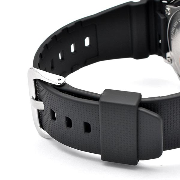 | 仕様 | ・耐衝撃構造 ・タフソーラー(ソーラー充電システム) ・モバイルリンク機能(対応携帯電話とのBluetooth®通信による機能連動) ・針退避機能(針が液晶表示と重なって見づらいときは、針を液晶表示の上から一時的に退避させることができます) ・ワールドタイム:世界38都市(38タイムゾーン、サマータイム自動設定機能付き)+UTC(協定世界時)の時刻表示、ホームタイムの都市入替機能 ・ストップウオッチ(1/100秒(1時間未満)/1秒(1時間以上)、24時間計、ラップ/スプリット付き) ・タイマー(セット単位:1秒、最大セット:60分、1秒単位で計測) ・時刻アラーム5本・時報 ・バッテリーインジケーター表示 ・パワーセービング機能(暗所では一定時間が経過すると表示を消して節電します) ・フルオートカレンダー ・12/24時間制表示切替 ・操作音ON/OFF切替機能 ・日付表示(月/日表示入替) ・曜日表示(英・西・仏・独・伊・露の6ヵ国語切替) ・ダブルLEDライト:文字板用LEDライト(スーパーイルミネーター、残照機能、残照時間切替(1.5秒/3秒)付き)、LCD部用LEDバックライト(スーパーイルミネーター、残照機能、残照時間切替(1.5秒/3秒)付き) |