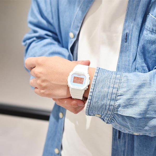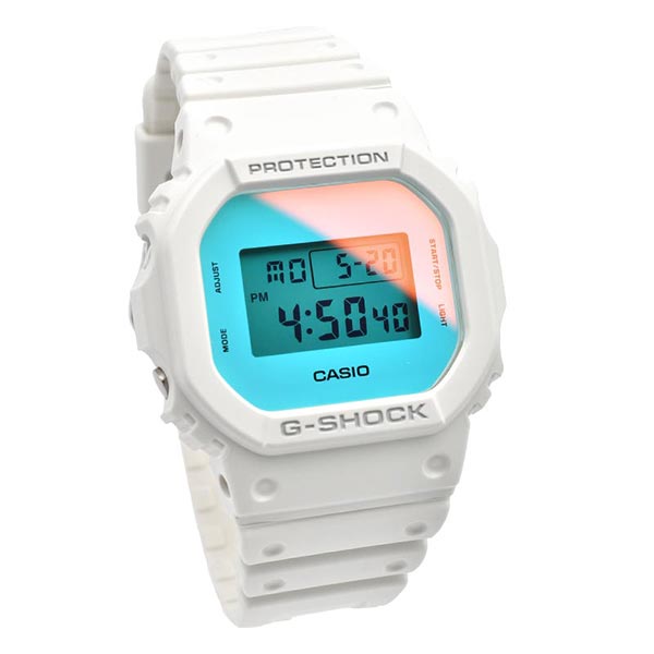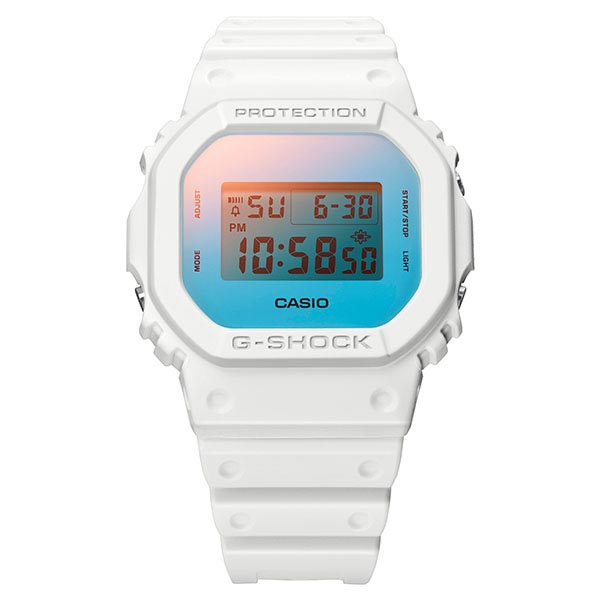 1983年の発売以来、飽くなき強さを求めて進化を続けるタフネスウオッチG-SHOCKから、ガラス面にグラデーション蒸着を施したBEACH TIME LAPSEシリーズです。光の反射により様々な色合いを見せる蒸着塗装を施し、刻々と移り変わる海辺の情景の変化を表現しました。カラーはフレッシュなホワイト×ブルーで強い日差しがふりそそぐ白い砂浜を、クールなグレースケルトン×オレンジで日が落ちていく穏やかな砂浜をイメージしました。製品ひとつひとつで異なる輝きになるため、自分だけのアイテムとしてもご活用いただけます。 DW5600TL7JF