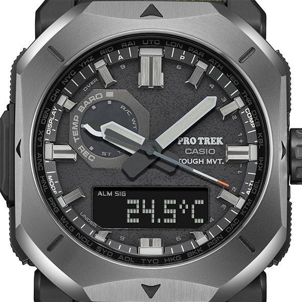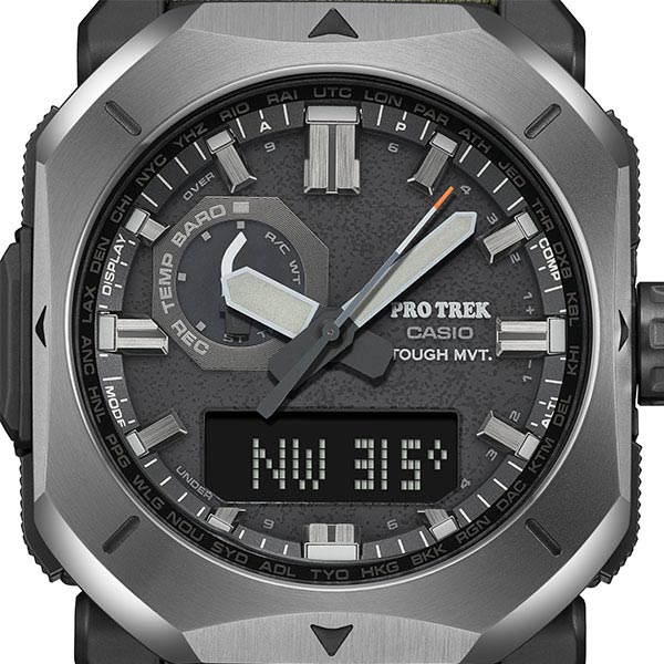 自然を愛する人の本格アウトドアギアPRO TREK PRW-6900シリーズの難燃クロスバンドを採用したPRW-6900YBをご紹介します。PRW-6900YBのバンドには、火の粉を受けても穴が開きにくい難燃処理を施したCORDURAre/corを採用し、アウトドアスタイルにふさわしい仕様になっています。バンドの色はテント素材に見られるカーキ色をベースに、アウトドアシーンでも街使いにも馴染むデザインに仕上げました。 PRW6900YB3JF